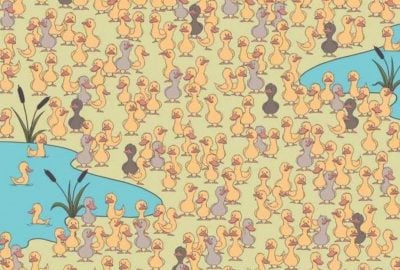 Oldj meg egy szórakoztató rejtvényt – a szürke és sárga kacsák között meg kell találnod egy csirkét, amely nagyon jól el tudott bújni a szemed elől.